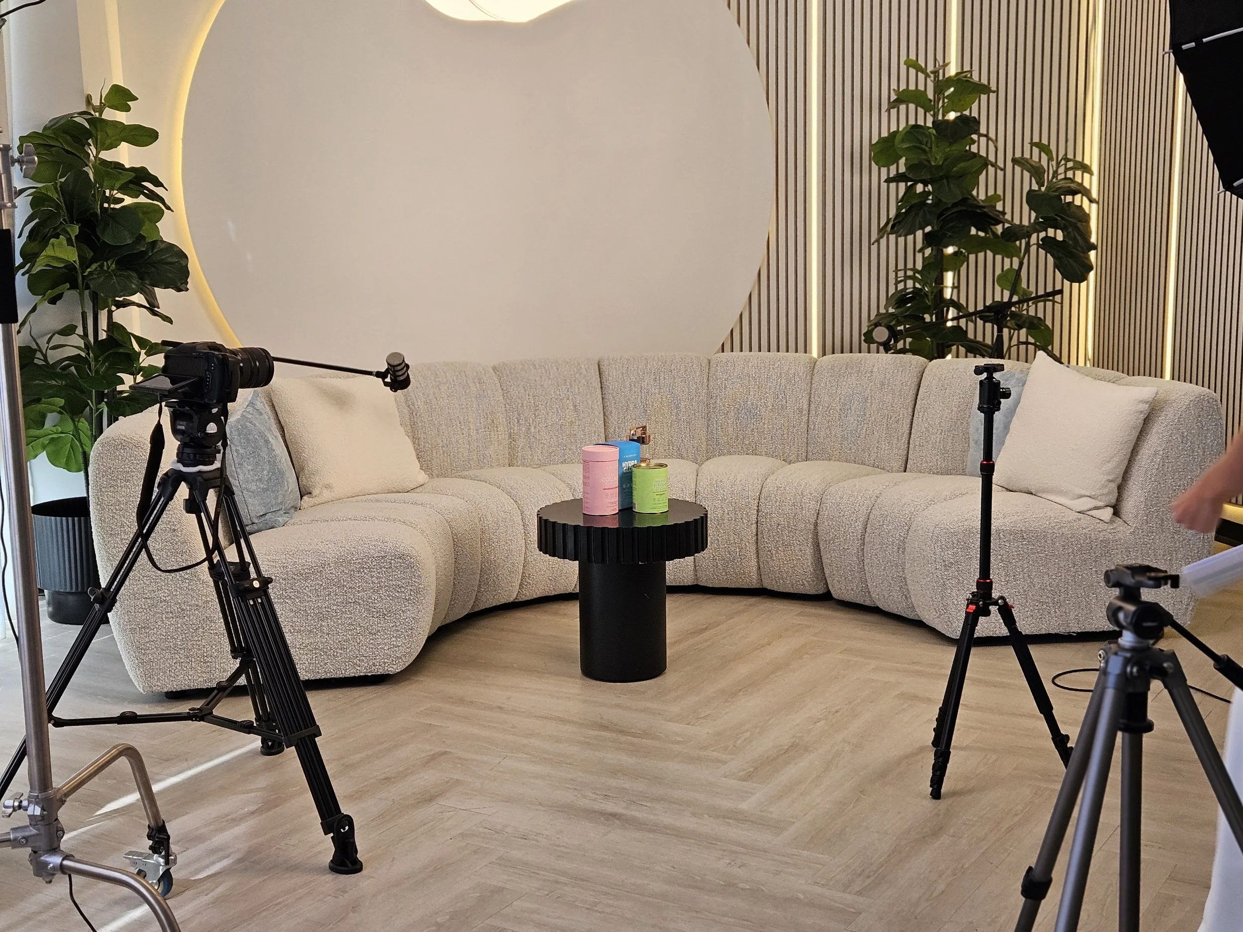4 Content rooms • Full sized cyclorama • French modern room • Dreamy mezzanine • Podcast Studio • Hollywood make-up area • Luxury furniture • Kitchen & bathroom • Free lighting • On-site parking •